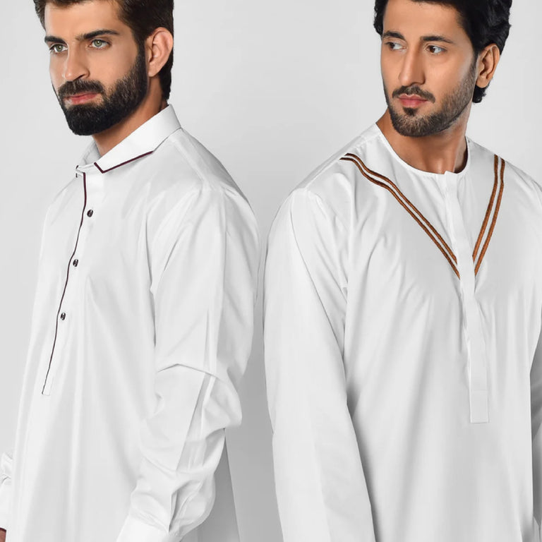 Simplicity never goes out of style, and white men's dishdasha prove just that.